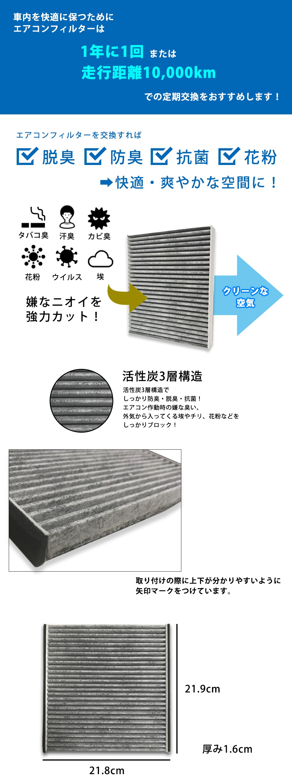 13時までのご注文 ご入金で即日出荷 営業日のみ エアコンフィルター トヨタ 受注生産品 ヴォクシー Zrr70 Zrr75 H19 6 3層構造 花粉 カーエアコン 防臭 互換品 活性炭 脱臭 クリーンエアフィルター 自動車用 抗菌